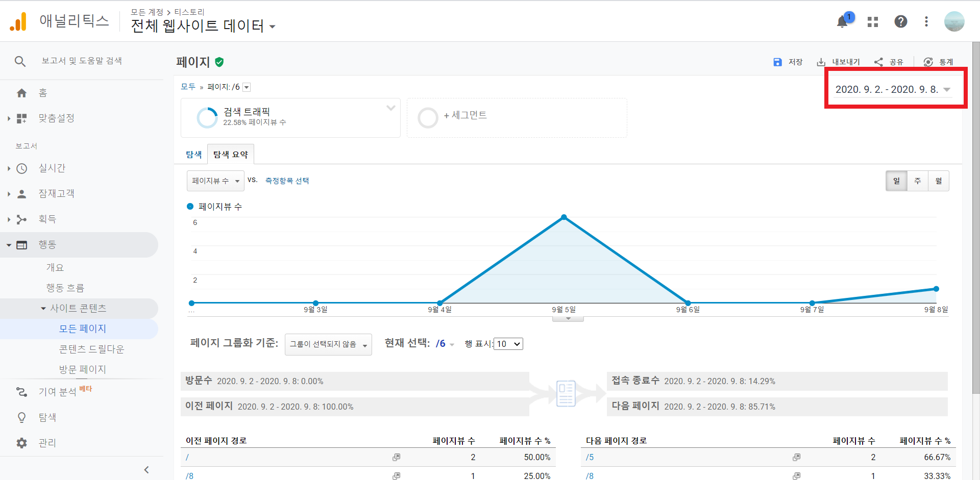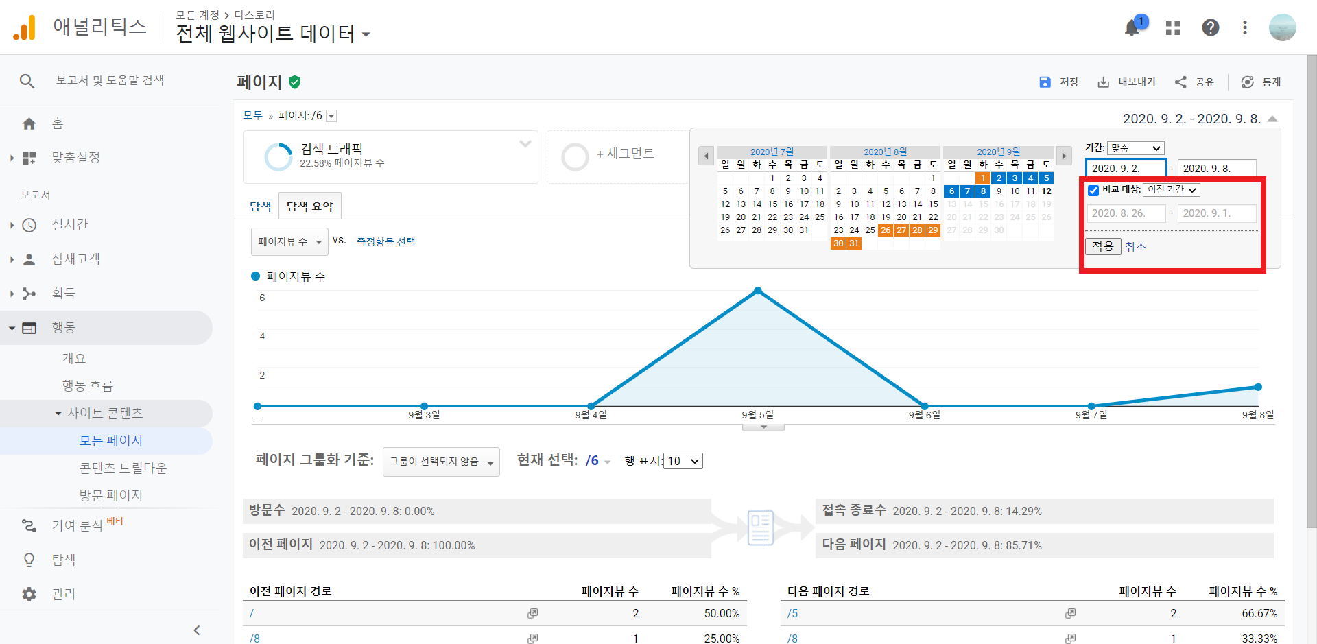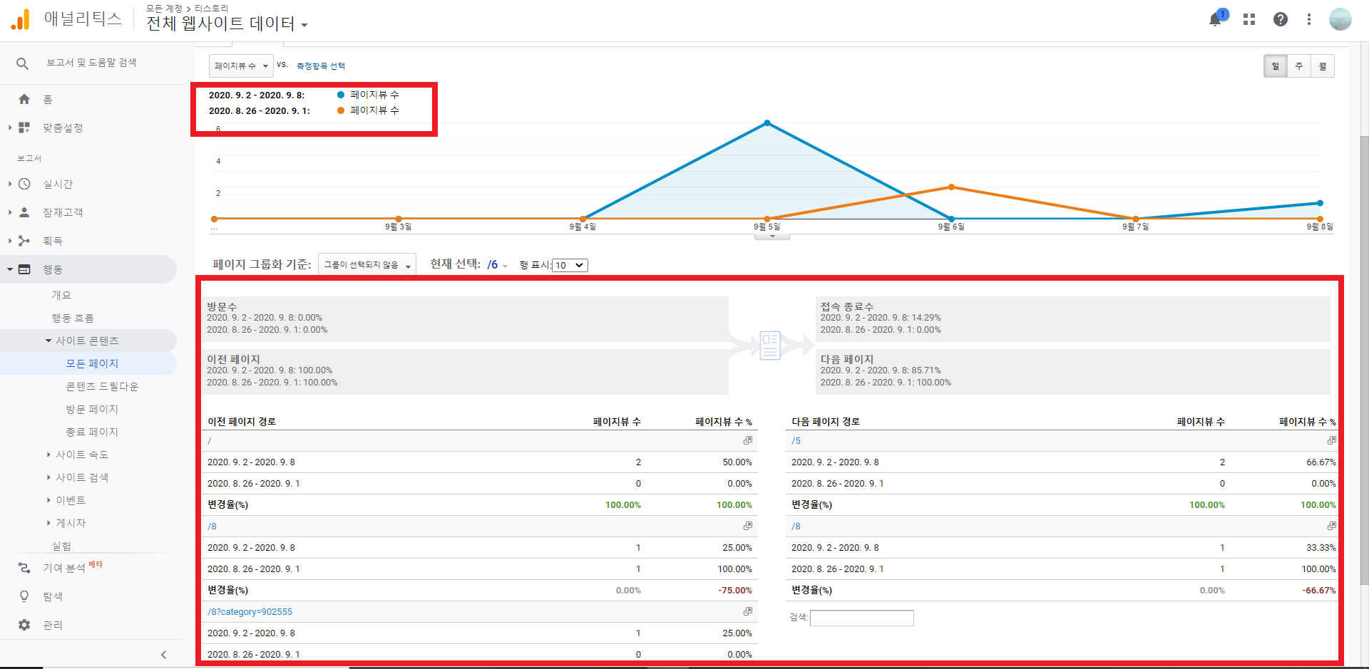이전과 이후 페이지 트래픽을 알아낼 수 있습니다