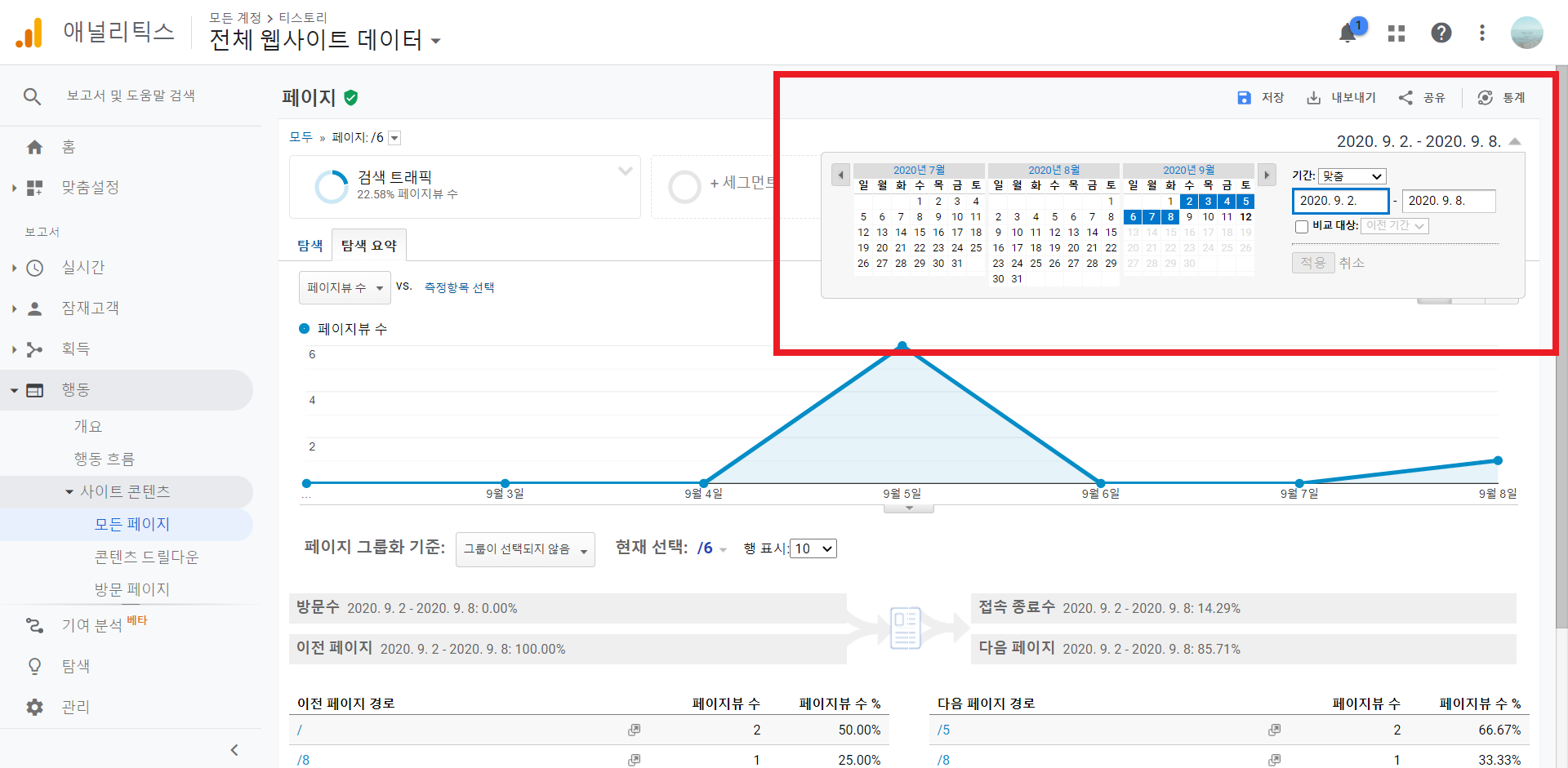 이전과 이후 페이지 트래픽을 알아낼 수 있습니다