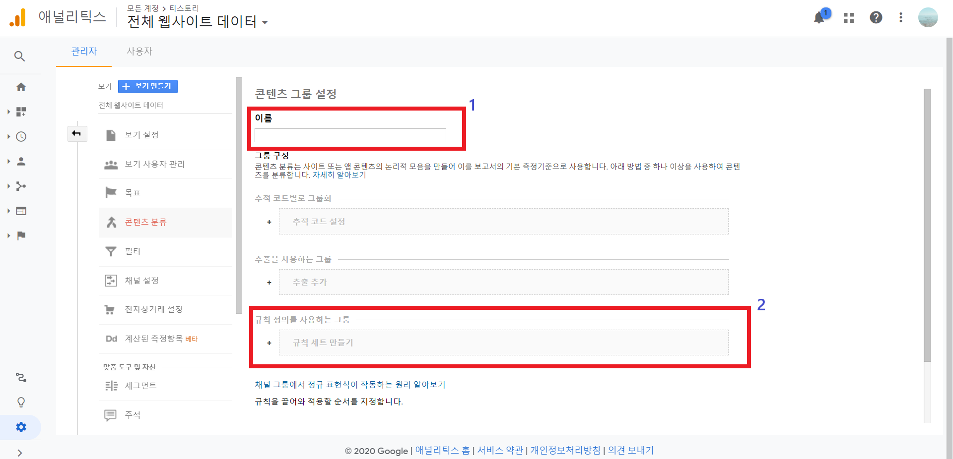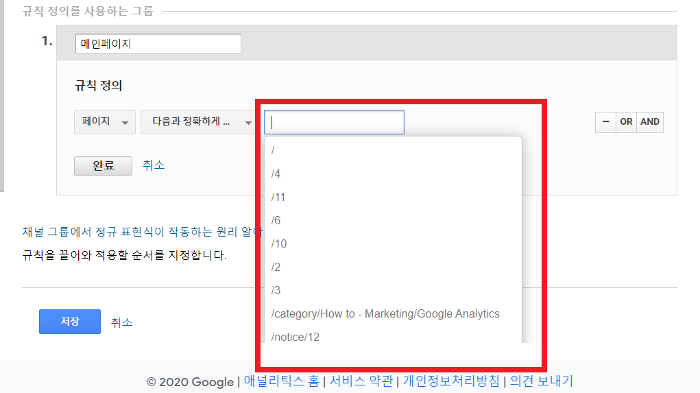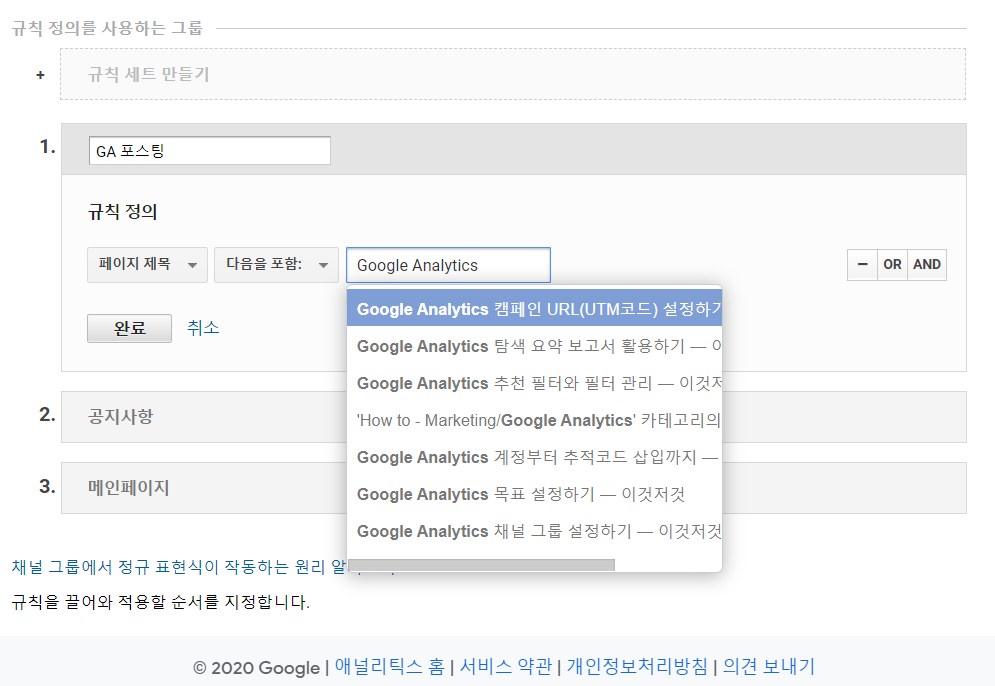 번외) 구글 애널리틱스 관련 콘텐츠 그룹 설정 규칙