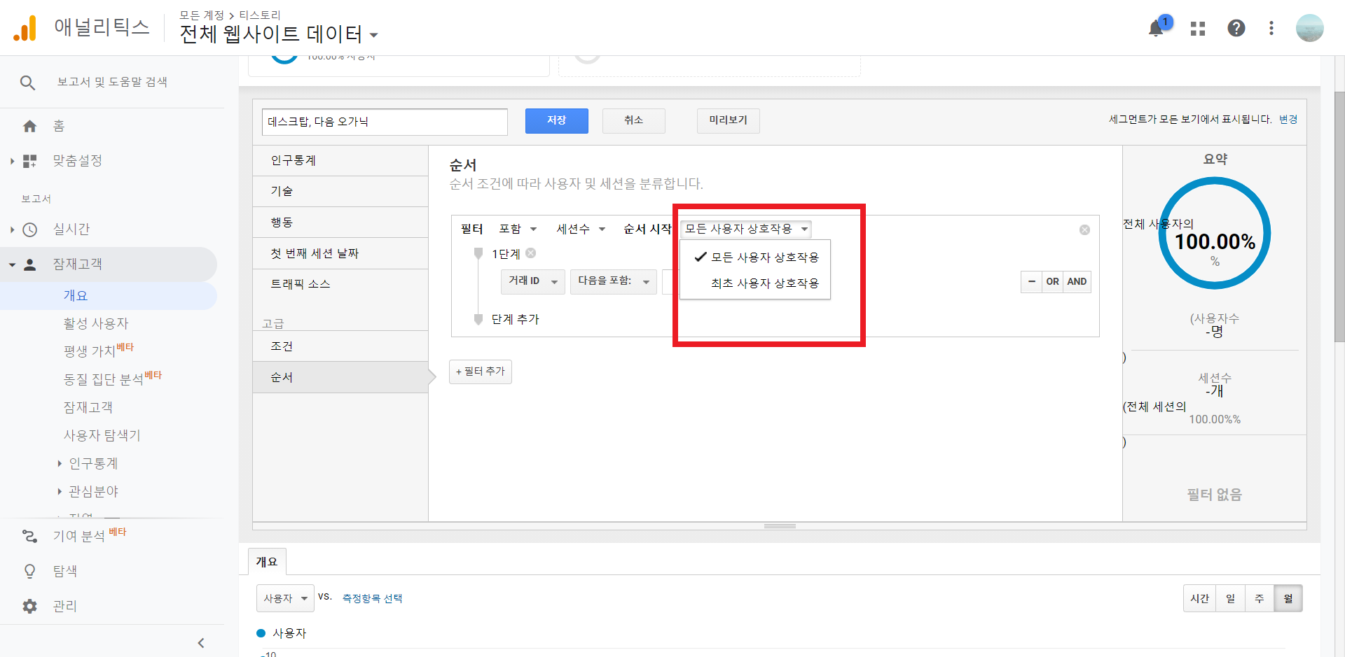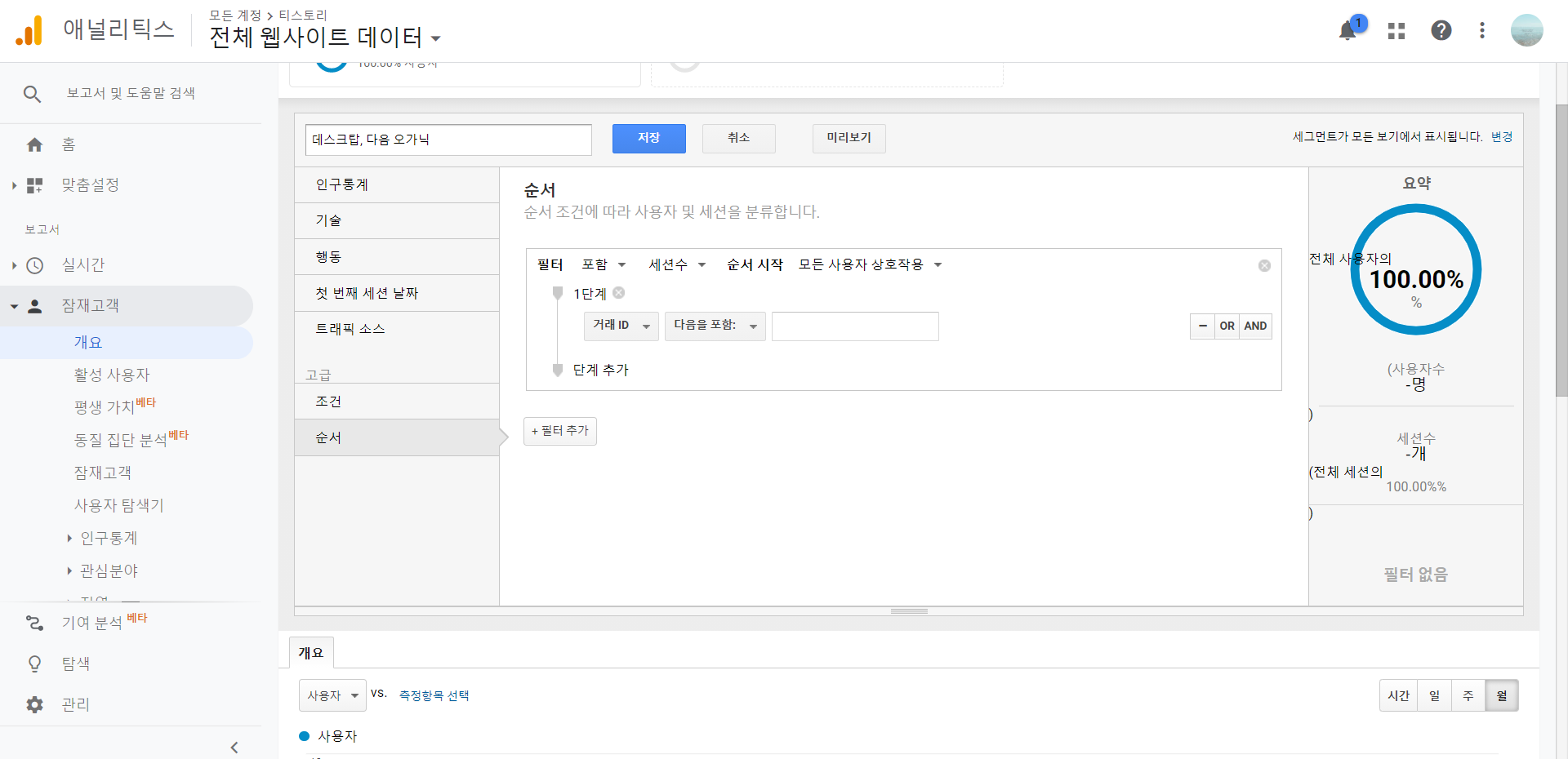 첫 순간 세그먼트 순서를 따라야 데이터가 집계됩니다