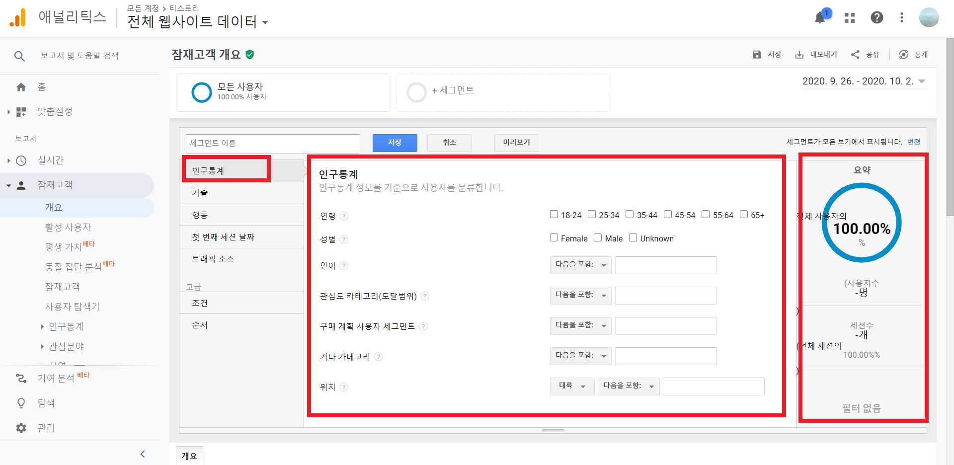 사용자가 설정한 세그먼트는 개별 계정별 적용이 되기 때문에 공유를 할 수 있습니다
