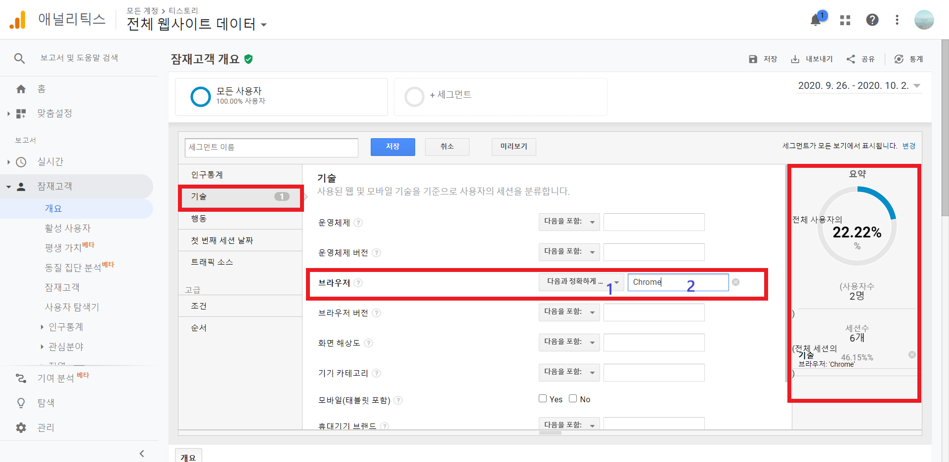 예시) 구글 크롬 브라우저를 통해 접속한 사용자 세그먼트 설정