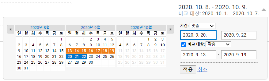 예시) 9월 20일 - 9월 22일(현재까지 모인 데이터)