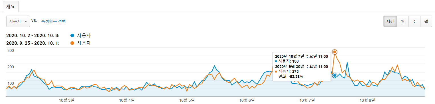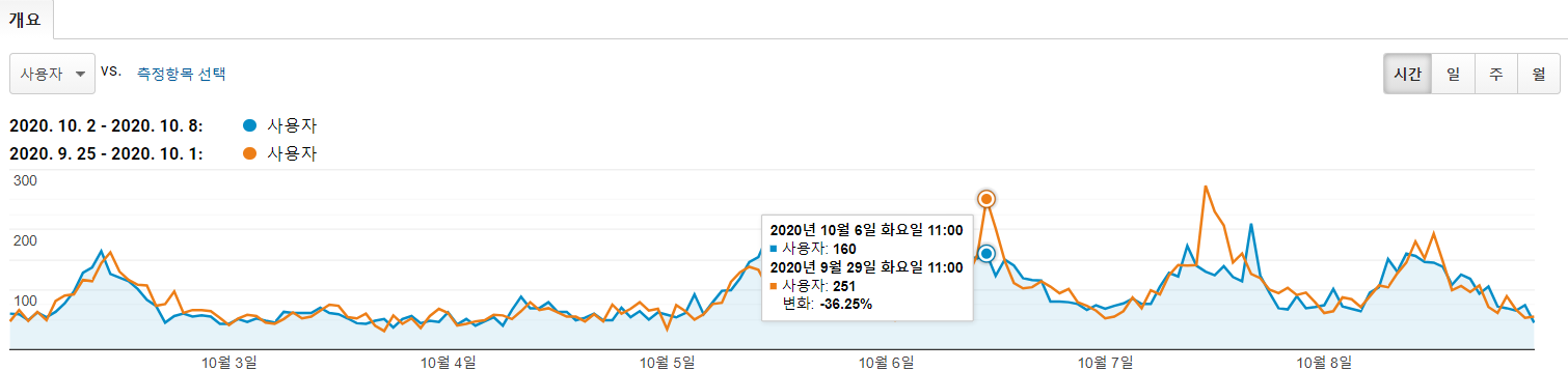 (10월 6일의 경우 최고 사용자수의 차이는 나지만 둘 다 고점은 11시였다)
