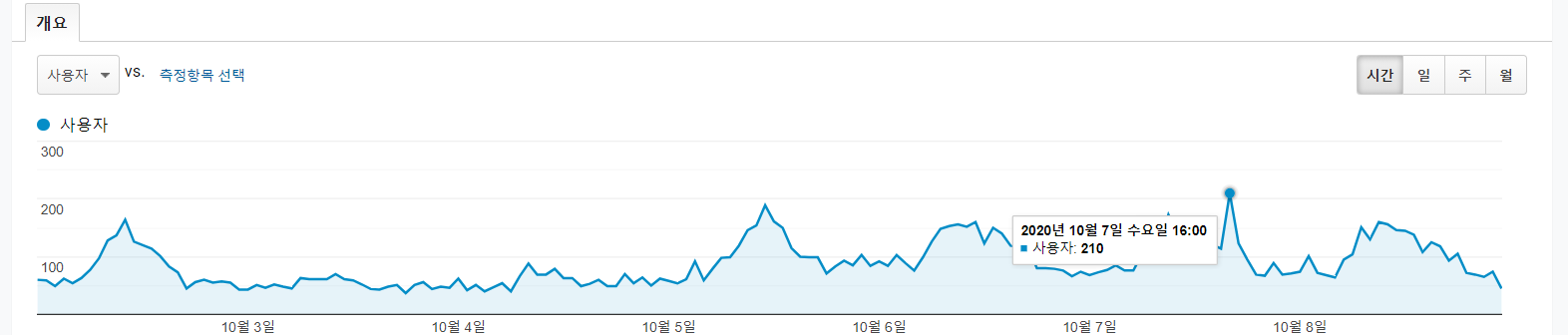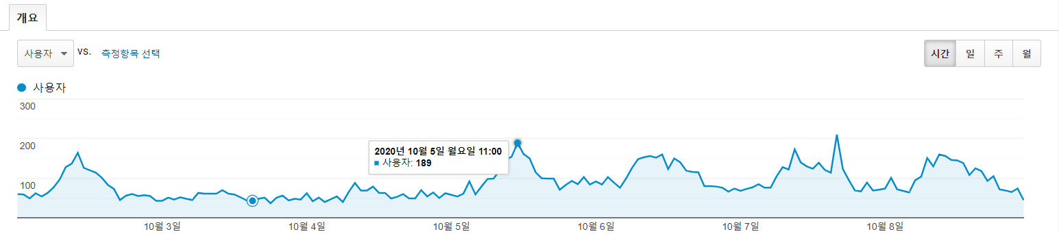 2020.10.02부터 2020.10.08의 시간별 사용자 수 보고서