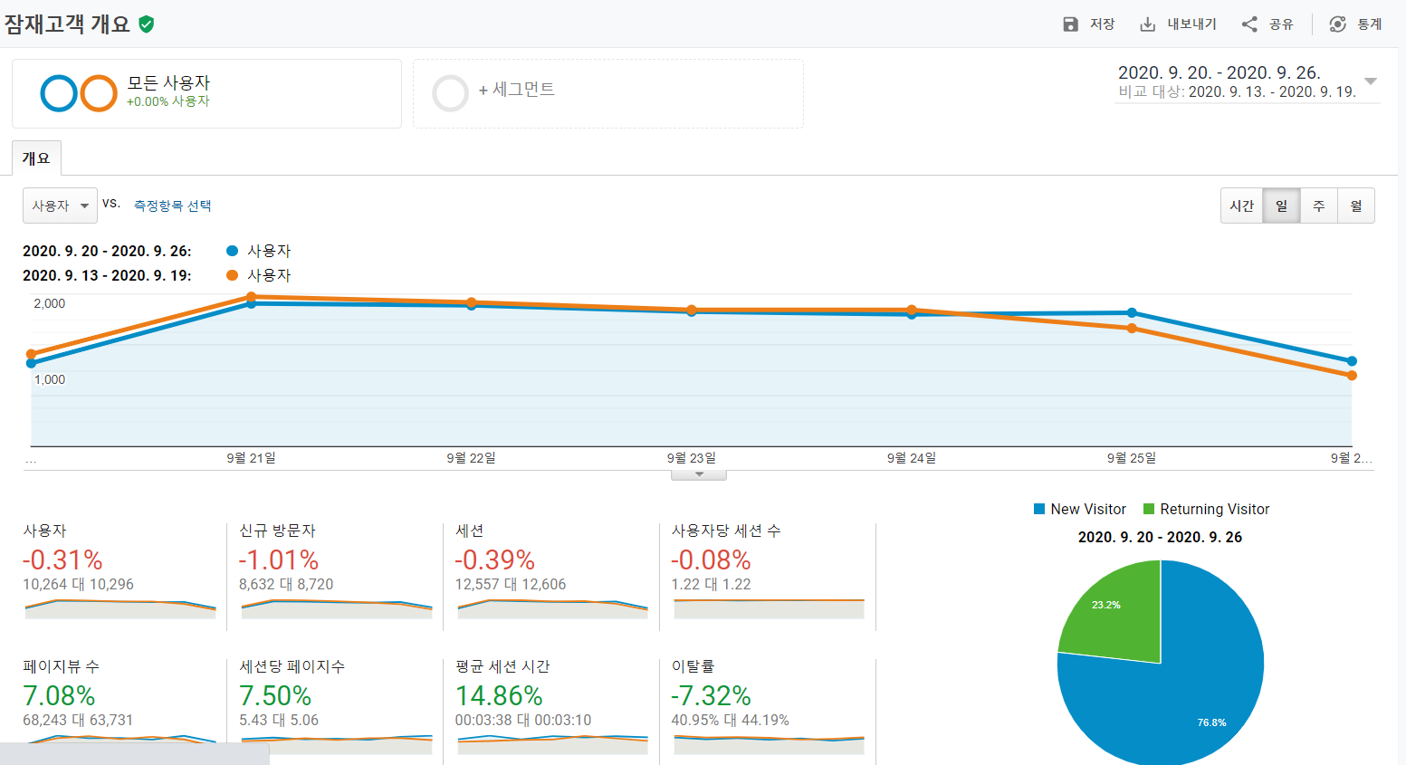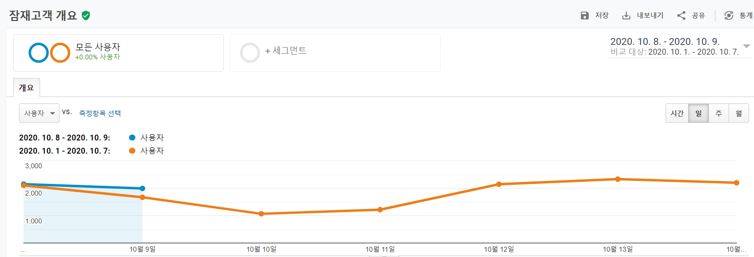 저번 주의 사용자수와 지금까지의 사용자 수가 비슷한 것을 알 수 있다