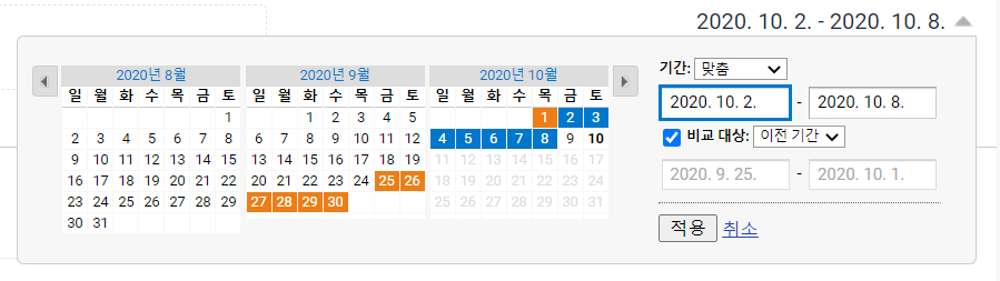 반면 저번 주(주황)와 유독 차이나는 날짜가 10월 07일