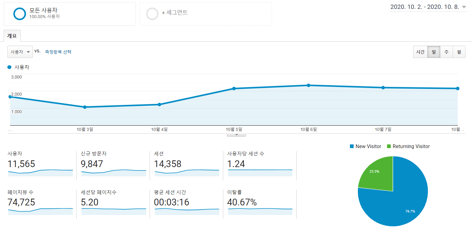 2020.10.02부터 10.08까지 사용자는 11,565명