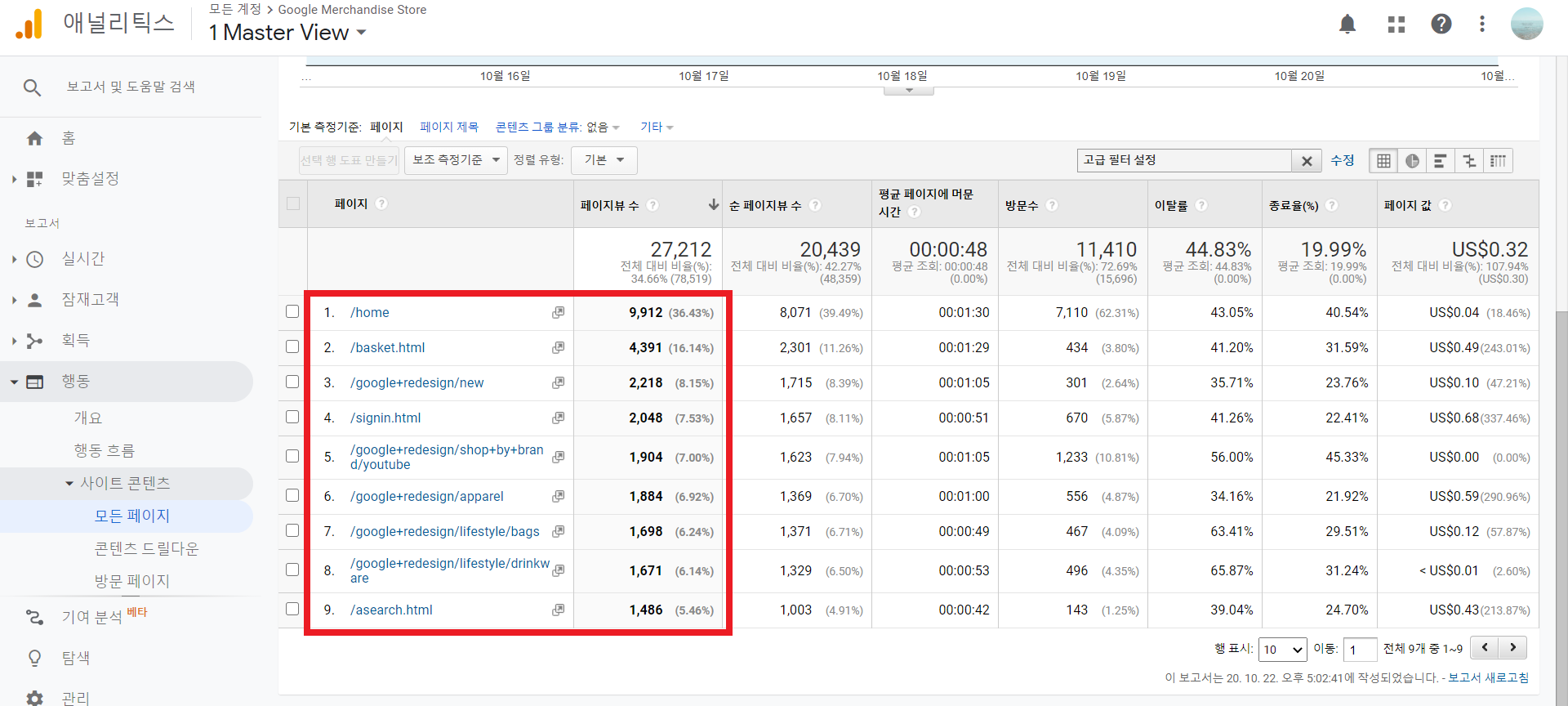 [Google Merchandise]사이드 콘텐츠 보고서 분석 - 1(페이지 뷰)