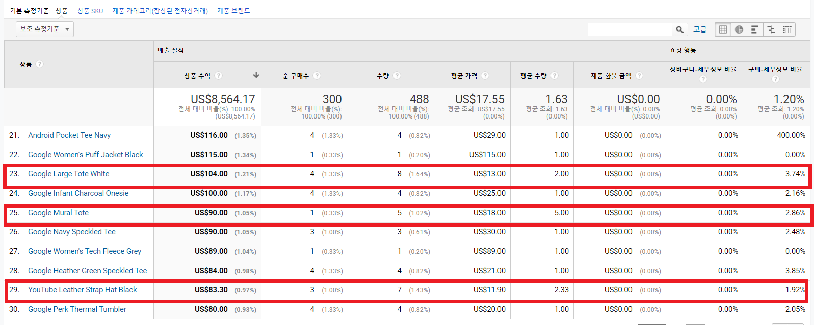 100%를 훨씬 넘는 구매-세부정보 비율을 가진 제품도 존재한다는 것이다