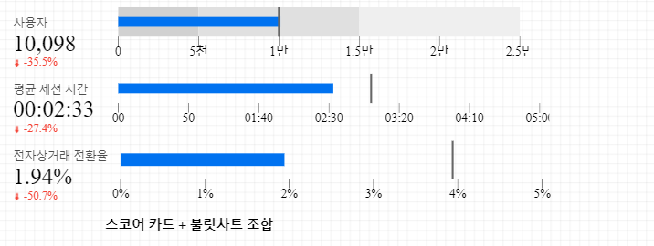 다음으로 스코어 카드와 같이 쓰면 좋은 차트는 불릿 차트가 있다