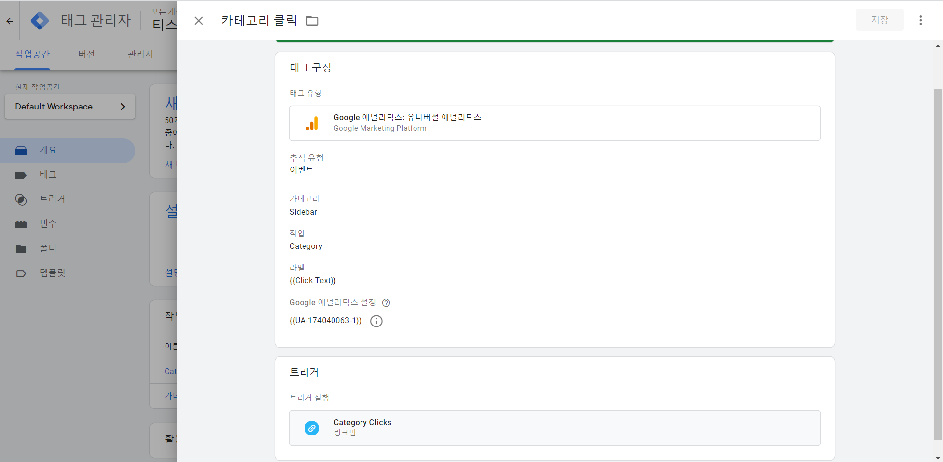 그렇기 때문에 Click URL 변수 조건에 오직 카테고리 페이지에만 공통으로 들어가는 URL을 입력한 것이다
