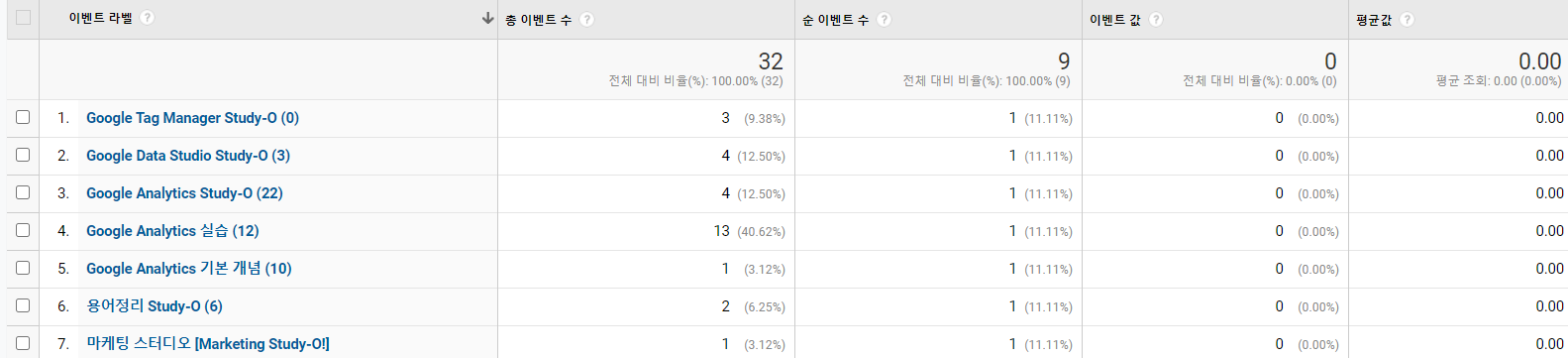 카테고리 메뉴 이름이 자동으로 이벤트 라벨 값으로 잡히는 것을 볼 수 있다