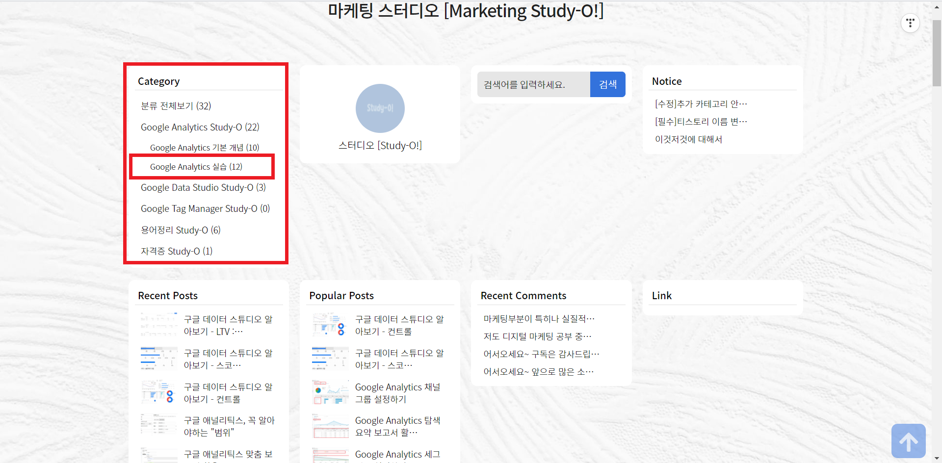 티스토리 카테고리 | learn-test.tistory.com/category/Google%20Analytics%20Study-/ Google%20Analytics%20%EC%8B%A4%EC%8A%B5 |