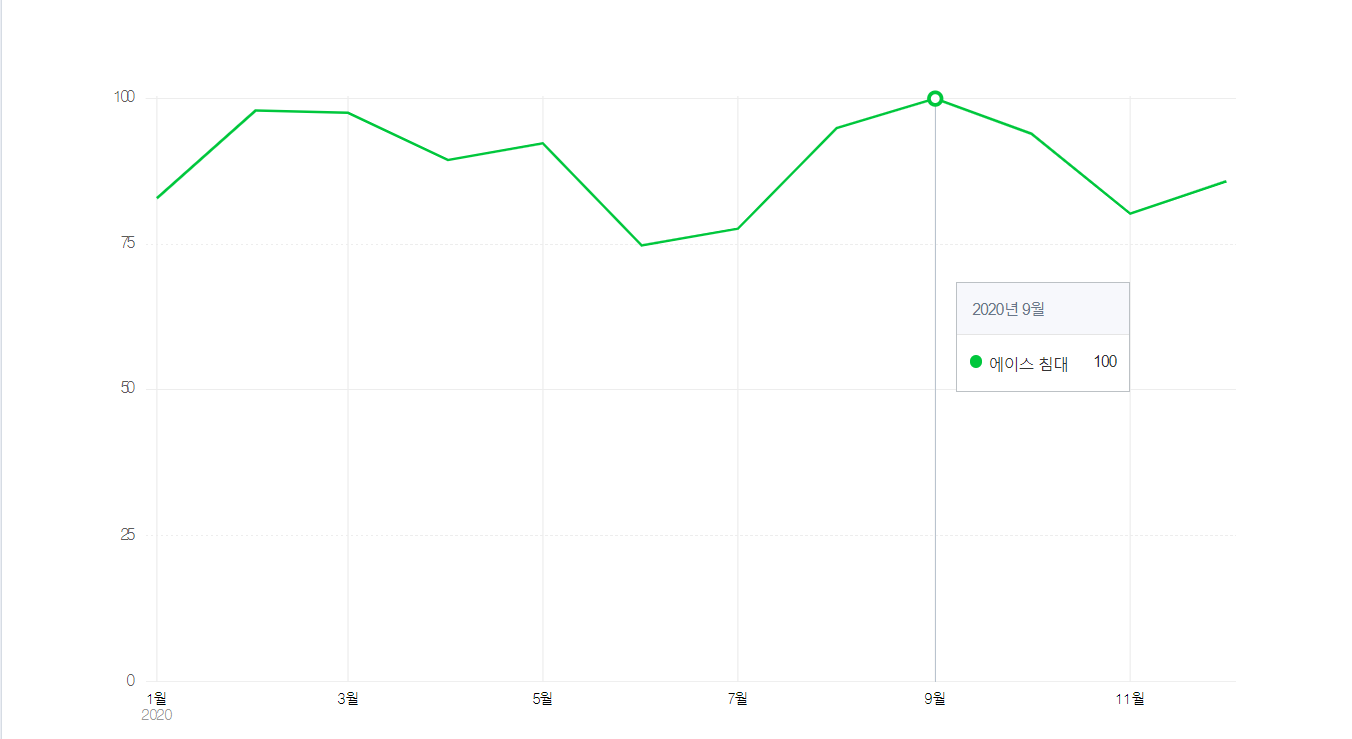 8월과 9월의 검색량은 최대치인 100%이며 7월부터 검색량이 증감한다는 트렌드가 존재한다