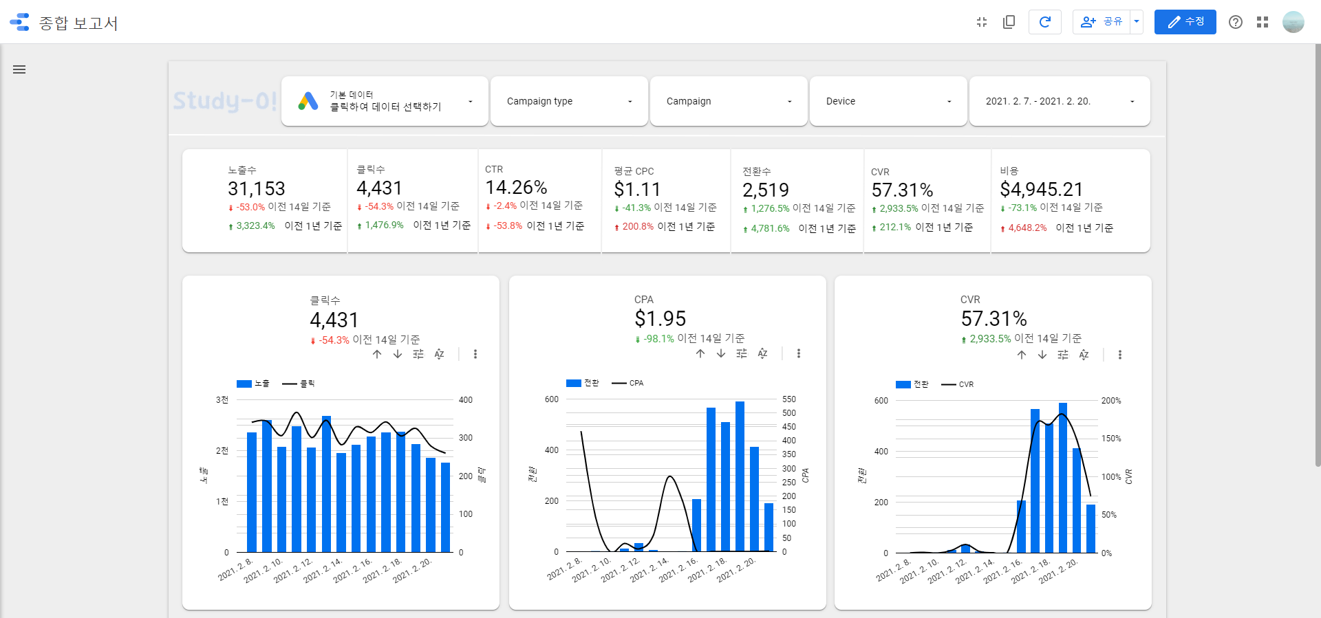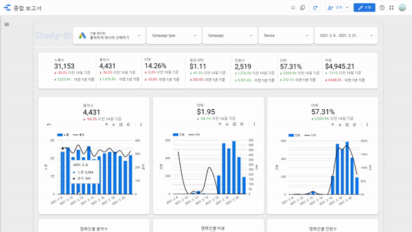 2021/03/04 - [Google Data Studio Study-O] - 구글 데이터 스튜디오 완성하기 - 구글 애즈 보고서 + 소소한 설정