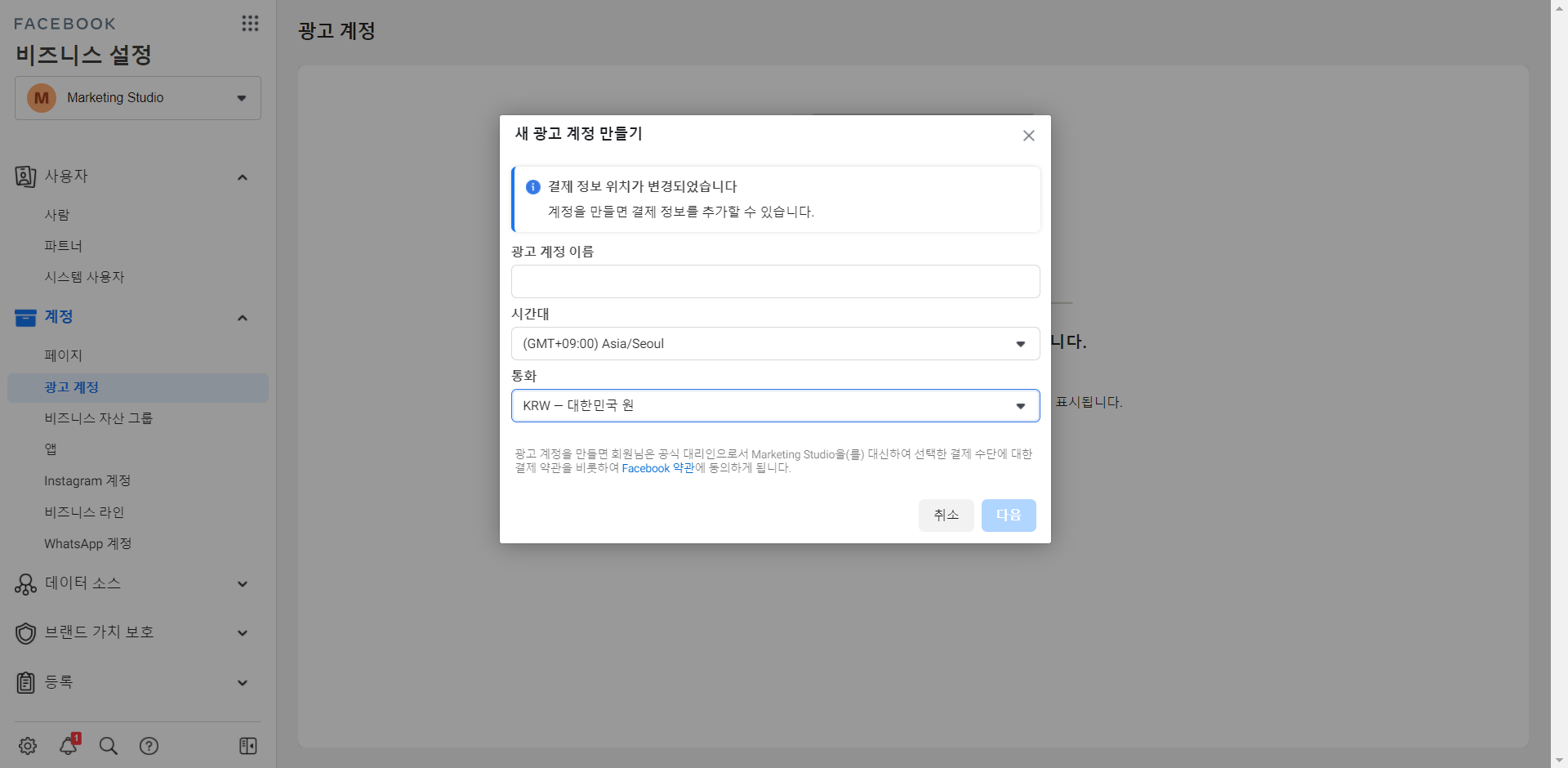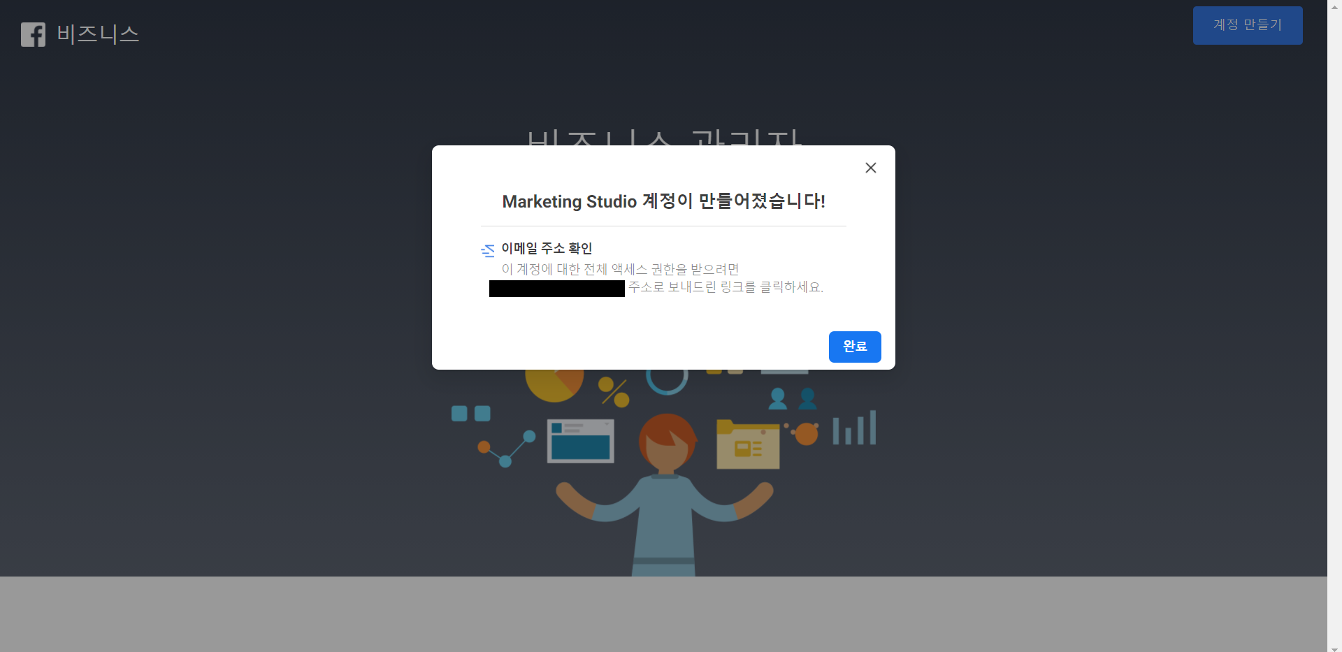 비즈니스 관리자 계정 생성 및 광고 집행이 가능하게 된다