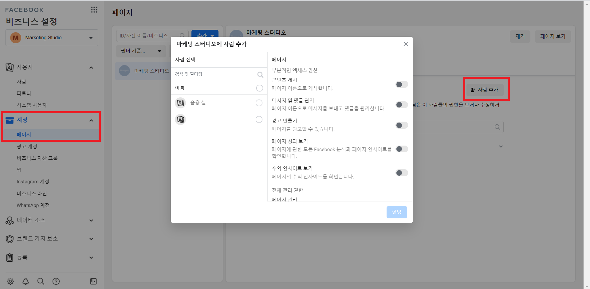 비즈니스 관리자 자산 연동하기 (페이지와 광고 계정)