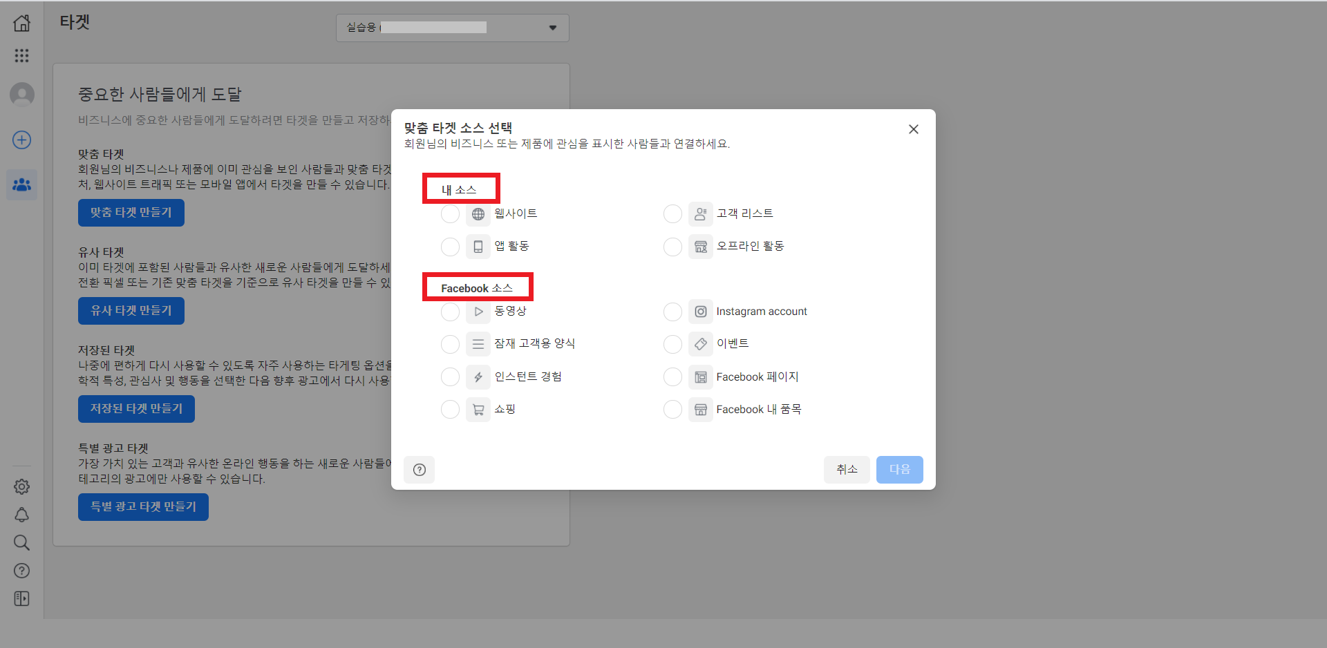 페이스북 소스 기반 맞춤 타겟에 대해서 짧게 얘기를 해보자면