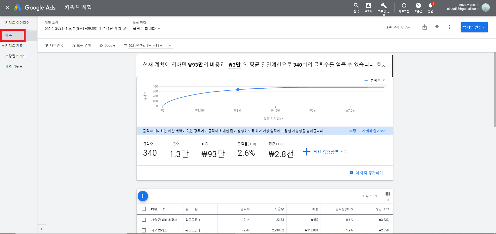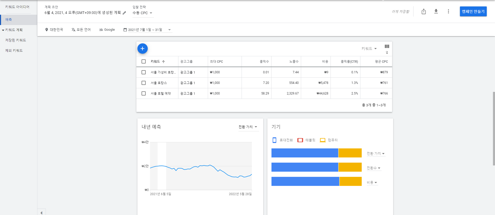 키워드 플래너를 통해 키워드 발굴은 물론 키워드 실적 예측까지 할 수 있다는 점에서