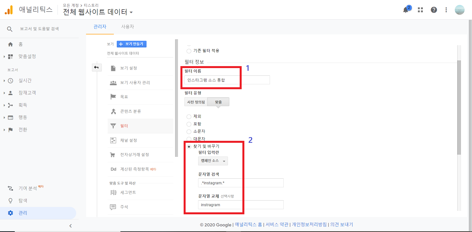 이를 방지하기 위해 캠페인 소스를 하나의 형태로 유지하는 필터가 이 필터입니다.