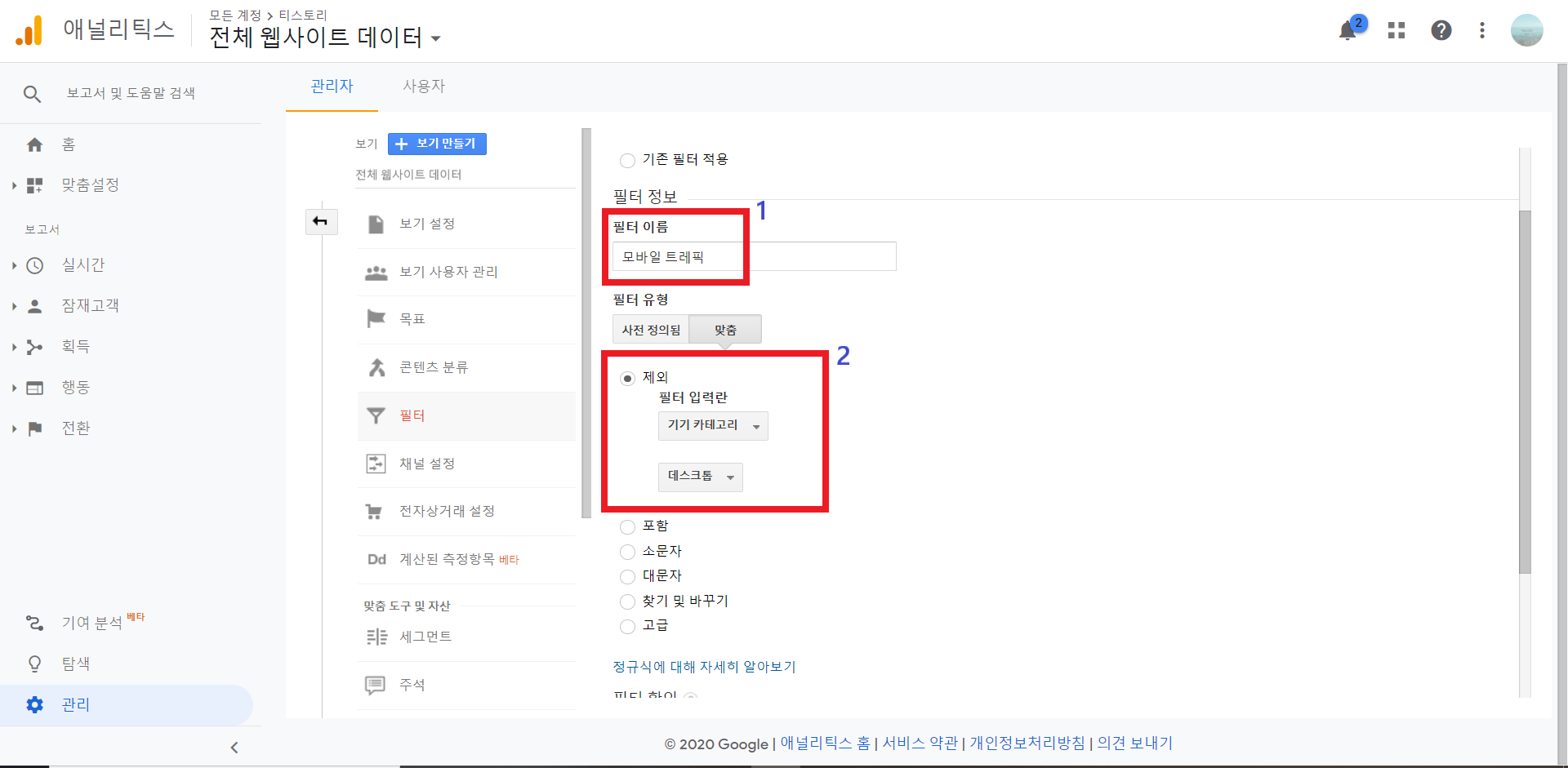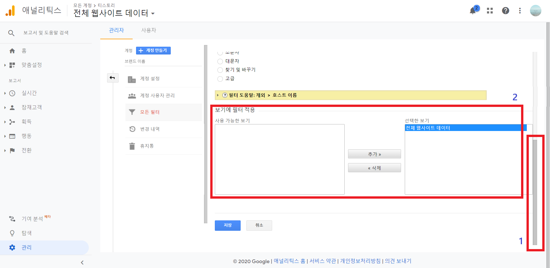 필터는 계정 혹은 보기에 설정할 수 있게 됩니다.